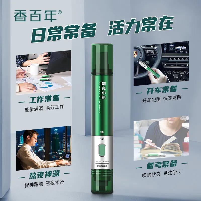 香百年清爽小新將能量本草油和能量乳霜合二為一,雙頭雙用,其兩端分別是乳霜和草本油。乳霜部分,取適量膏霜在掌心搓勻,涂抹于面部和頸部肌膚;草本油部分,則是取適量本品涂抹于頭部、肩頸肌膚按摩至吸收。同一個產品,兩端為兩種不一樣的用法,一抹一聞,伴隨著香百年的天然清香,皆可讓昏昏欲睡的車主快速清醒,遠離疲勞駕駛,清新爽膚、沁涼滋潤肌膚。