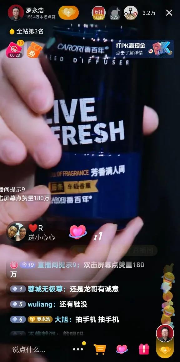 香百年能夠在眾多車載香水品牌中被羅永浩頂流帶貨主播點贊和肯定,足見香百年的產品力和品牌力!